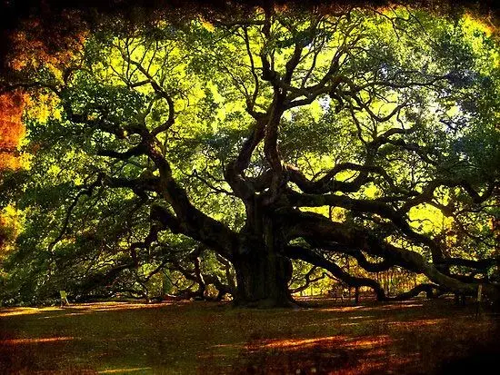 این درخت ۱۵۰۰ ساله در جزیره ی جونز و در ایالت کارولینای جنوبی در آمریکا قرار دارد. شاخه های این درخت بلند بر مساحتی حدود ۵ کیلومتر مربع سایه می افکنند. گفته می شود که این درخت یکی از قدیمی ترین ارگانیسم های زنده در شرق رودخانه ی می سی سی پی است. اندازه ی محیط تنه ی درخت بلوط فرشته ۸ متراست و هر یک از شاخه های آن تا ۳۰ متر کشیده شده اند. این درخت بلایای طبیعی بسیاری را از سر گذرانده است که از آن جمله می توان به زلزله ای در سال ۱۸۸۶، سیل های بیشمار و طوفان هایی مثل طوفان هوگو در سال ۱۹۸۹ اشاره کرد.