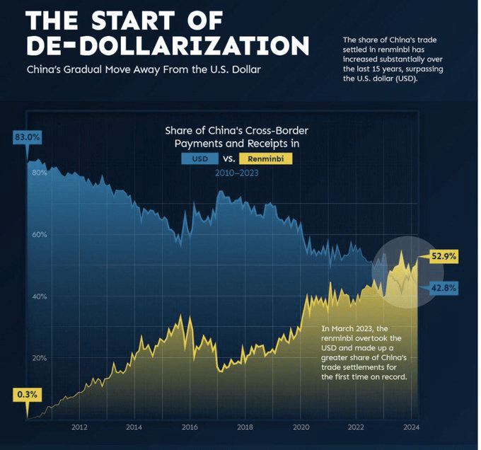 تحریمهای مالی آمریکا علیه روسیه (پس از جنگ اوکراین) و تهدید مشابه برای چین، به پکن هشدار داد که وابستگی به سیستم مالی دلاری ریسک بزرگی است.