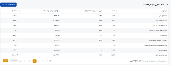 سهام عدالت از سال ۱۳۸۵ با هدف توانمندسازی دهک‌های کم درآمد جامعه به هفت دهک کم درآمد اختصاص پیدا کرد.ارزش روز سهام عدالت به ارزش اسمی ۵۳۴ هزار تومانی که بیش از ۸۰ درصد از سهامداران را تشکیل می‌دهد، امروز به ۳۲ میلیون و ۱۵۶ هزار و ۷۵ تومان رسید.سهام عدالت در حال حاضر مرکب از سهام ۳۶ شرکت است که ۱۲ شرکت غیر بورسی و ۳۲ شرکت بورسی هستند.از شرکت‌های بورسی سهام عدالت، می‌توان به آلومینیوم ایران، بیمه دانا، فجر انرژی خلیج فارس، بانک ملت، بانک صادرات، بانک تجارت، معدنی و صنعتی چادر ملو، فولاد آلیاژی ایران، فولاد خوزستان، فولاد مبارکه، معدنی و صنعتی گل گهر، ایران خودرو، کشتیرانی جمهوری اسلامی، مپنا، مخابرات ایران، ملی مس ایران، نیرو ترانس، پتروشیمی جم، پتروشیمی خلیج فارس، پالایش نفت بندرعباس، پالایش نفت اصفهان، پالایش نفت تبریز، پالایش نفت شیراز، پالایش نفت تهران، سرمایه‌گذاری رنا، سیمان دشتستان، سایپا، سرمایه‌گذاری توسعه صنعتی ایران، پتروشیمی مارون، پالایش نفت لاوان و پتروشیمی تندگویان اشاره کرد.در حال حاضر نماد معاملاتی شرکت‌های سرمایه‌پذیر سهام عدالت بسته بوده و سهامداران امکان خرید و فروش این سهام را ندارند.این سهام با هدف توانمندسازی دهک‌های کم درآمد جامعه اختصاص یافته و با هدف مشارکت مردم در اقتصاد و افزایش تعلق اجتماعی و گسترش عدالت اجتماعی پرداخت شده است.