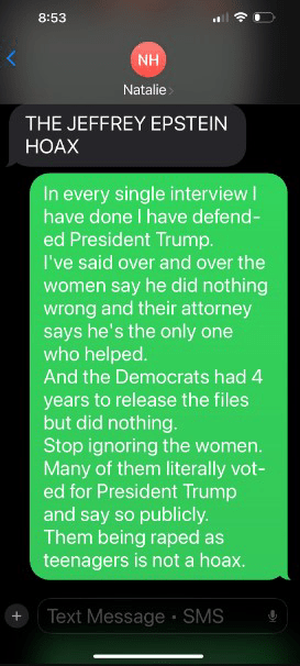 او با اشاره به پرونده اپستین نوشت: «البته او سخت به دنبال من است تا قبل از رأیگیری هفتههای آینده برای انتشار پروندههای اپستین، درس عبرتی برای سایر جمهوریخواهان بسازد. واقعاً شگفتانگیز است که او چقدر سخت تلاش میکند تا جلوی انتشار پروندههای اپستین را بگیرد، که واقعاً تا این حد پیش میرود.»گرین گفت: «اما واقعاً اکثر آمریکاییها آرزو میکنند که او اینقدر سخت مبارزه کند تا به مردان و زنان فراموششده آمریکایی که از جنگها و آرمانهای خارجی خسته شدهاند، در تلاش برای سیر کردن خانوادههایشان ورشکست شدهاند و امید خود را برای رسیدن به رویای آمریکایی از دست دادهاند، کمک کند. این چیزی است که من به آن رأی دادم.»او به ترامپ یادآوری کرد: «من با بخش زیادی از وقت گرانبهایم، بخش زیادی از پولم از رئیسجمهور ترامپ حمایت کردهام و حتی زمانی که تقریباً همه جمهوریخواهان دیگر به او پشت و او را محکوم کردند، برای او سختتر جنگیدهام.»عضو جمهوریخواه کنگره افزود: «اما من دونالد ترامپ را نمیپرستم یا به او خدمت نمیکنم. من خدا را میپرستم، عیسی مسیح ناجی من است، و به حوزه انتخابیهام (در جورجیا) و مردم آمریکا خدمت میکنم. من امروز هم مثل همیشه هستم و همچنان دعا میکنم که این دولت موفق شود، زیرا مردم آمریکا به شدت شایسته چیزی هستند که به آن رأی دادهاند.»گرین که پیش از این بارها علیه کمکهای نظامی و مالی آمریکا به اسرائیل موضع گرفته است، این بار نوشت: «من همچنان (معتقد) به اول آمریکا و فقط آمریکا هستم!!!»