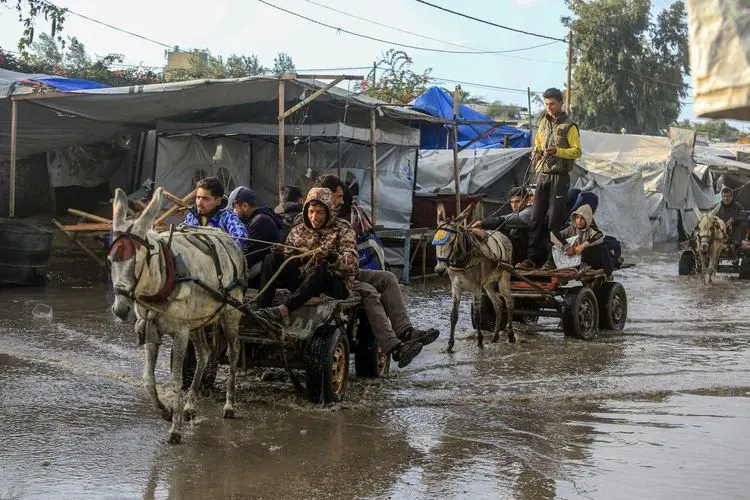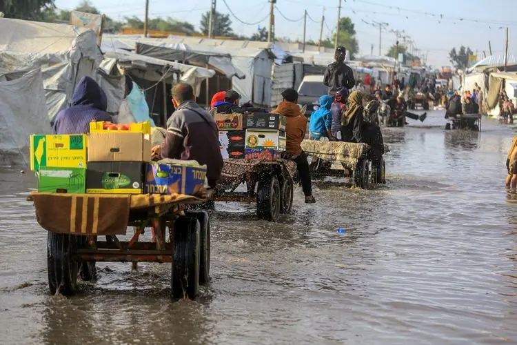 در نتیجه بارش شدید باران چادرهای آوارگان فلسطینی در خان یونس واقع در جنوب نوار غزه غرق در آب شد.