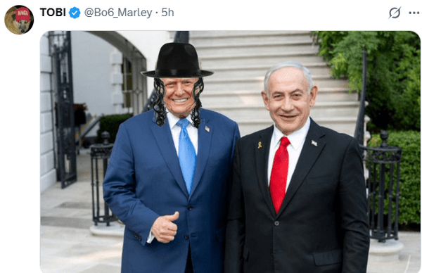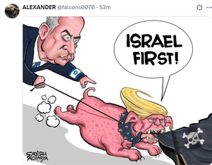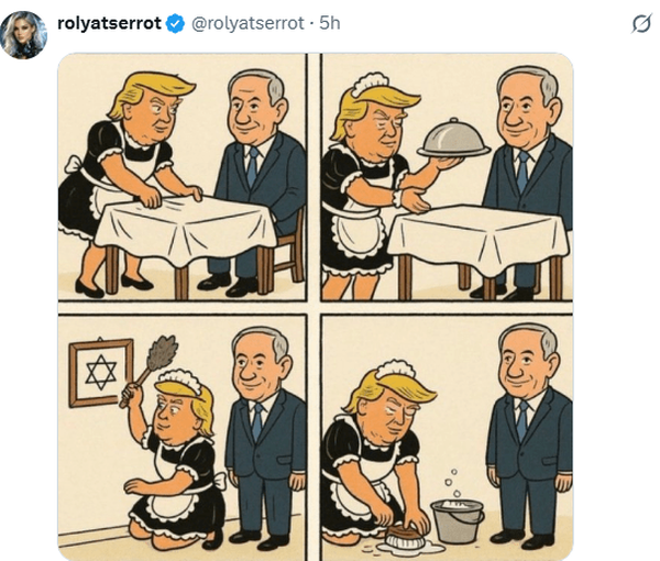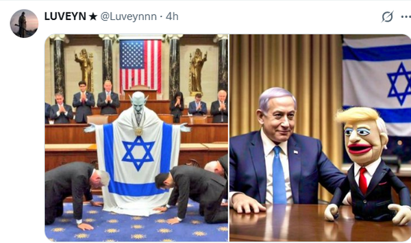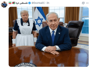 کاربران خارجی با انتشار تصاویر ساخته شده با هوش مصنوعی و یا کاریکاتورهایی خنده دار، ترامپ را در خدمت اسرائیل و شخص نتانیاهو توصیف کردند.