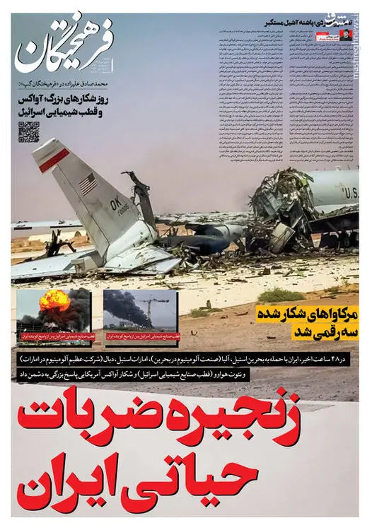 زنجیره ضربات حیاتی ایران، خواب ترامپ برای ایران در آمریکا تعبیر شد، قالیباف: نشانههای فتح آشکار شده است، جهان علیه ترامپ و... از جمله تیترهای صفحه نخست روزنامه های دوشنبه ۱۰ فروردین بودند.