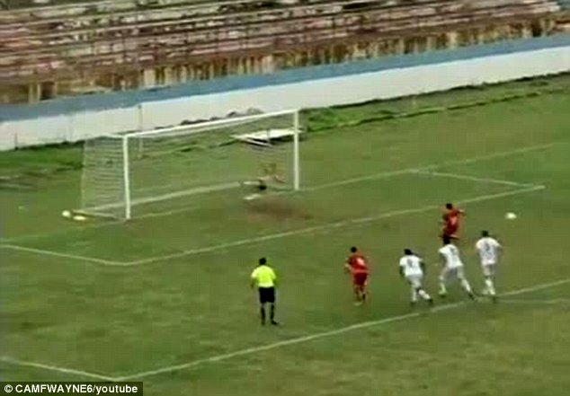 کلاً خبر اشتباه است این پنالتی از این جهت بدترین پنالتی شده که زننده پنالتی توپ را به سمت راست خودش همانطور که در تصویر میبینید زده نه به یسمت دروازه. از این جهت بدترین پنالتی تاریخ!!!! شده از این نوع پنالتی ها که دروازبان فریب بخوره و توپ هم به بیرون زده بشه زیاد بوده نمونش پنالتی رحمتی به سپاهان(توپ کنار دروازه یک توپ خارج از جریان بازی است)
