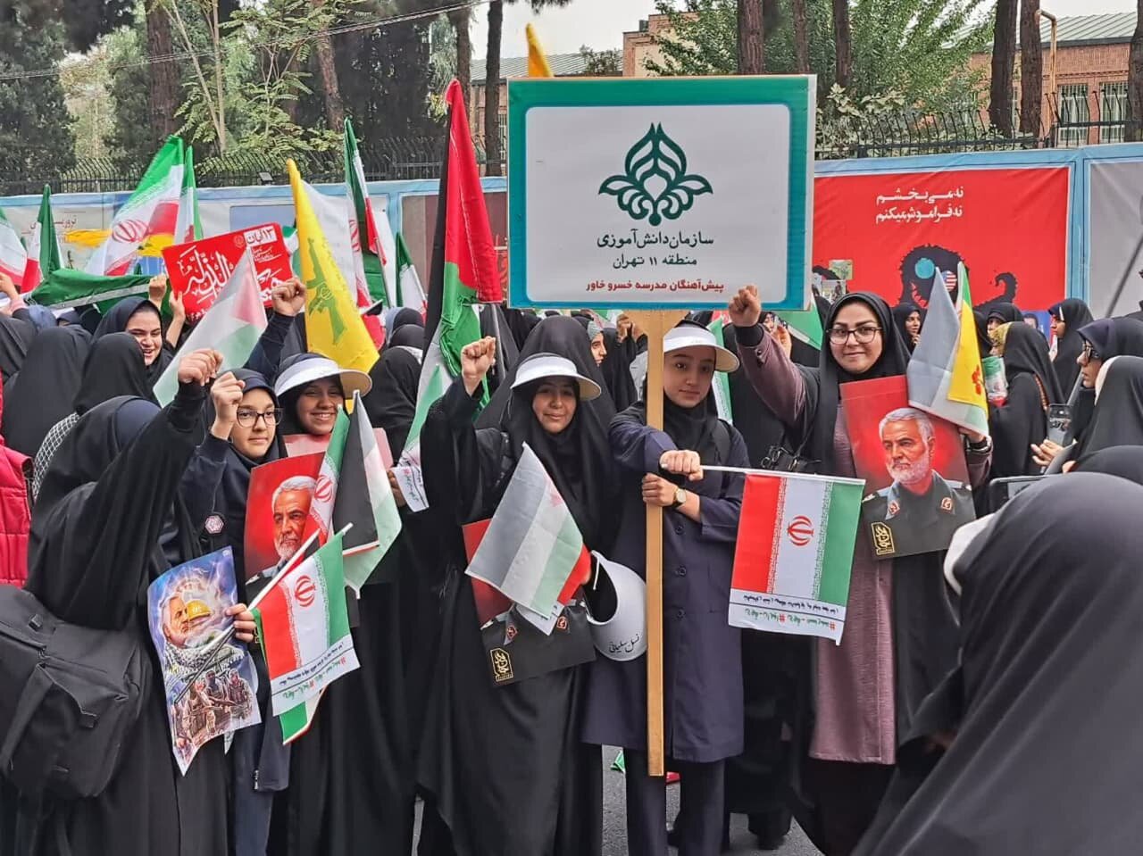 مادران ایرانی که با کودکان خود در مراسم ۱۳ آبان حاضر شده بودند، با اشعار و نامههای خود حمایت خود از کودکان فلسطین را اعلام داشتند، همچنین دانش آموزان با سرودهای حماسی پیام ایستادگی در مقابل آمریکا و رژیم اسرائیل و حمایت از فلسطین را به دنیا مخابره کردند.