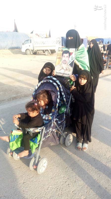 همسر شهید عراق با 4 فرزند دختر و عکس همسرش در مسیر اربعین